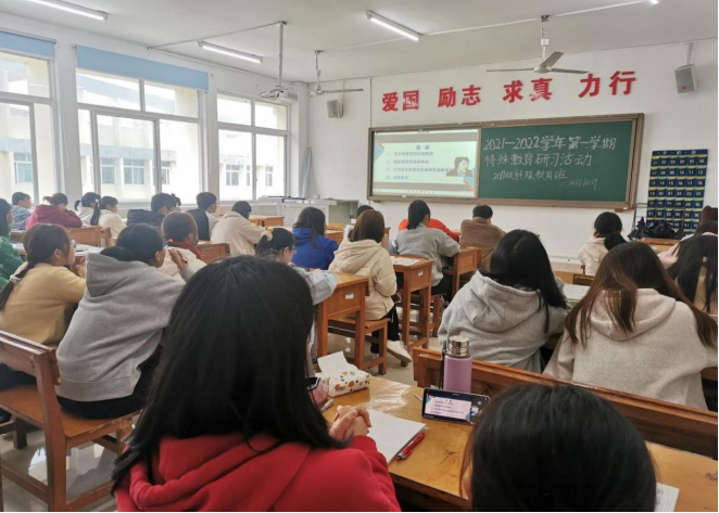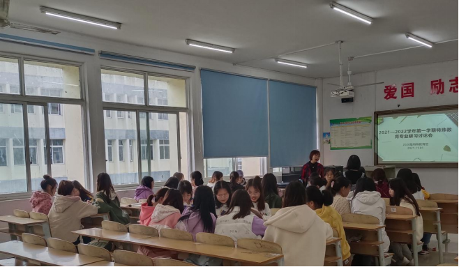 为加强学生专业学习,培养学生研习能力,为落实《beat365中国唯一官网特殊教育专业人才培养方案》及《beat365中国唯一官网特殊教育专业教育研习大纲》要求,教育学院特殊教育系于2021年11月1日—2日就全省第二期国家通用手语和通用盲文推广培训内容开展研讨。参与研讨有陆艳、彭霓、宋健老师和2019级、2020级特殊教育专业全体学生,彭霓老师担任研讨主持人。