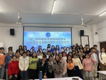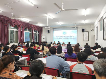 为进一步促进特殊教育专业建设,丰富专业学生研习形式,让特殊教育专业学生切实了解一线教学情况,特殊教育系于2020年11月17日至11月19日在明理楼B302教室开展了2020年度专业研习暨学术沙龙活动。本次活动邀请的嘉宾有铜仁幼儿师范高等专科学校肖乐老师、铜仁宏昕康新中医医院儿童康复中心杨莎主任、铜仁宏昕康新中医院姚小艳老师,特殊教育系系全体师生参与。