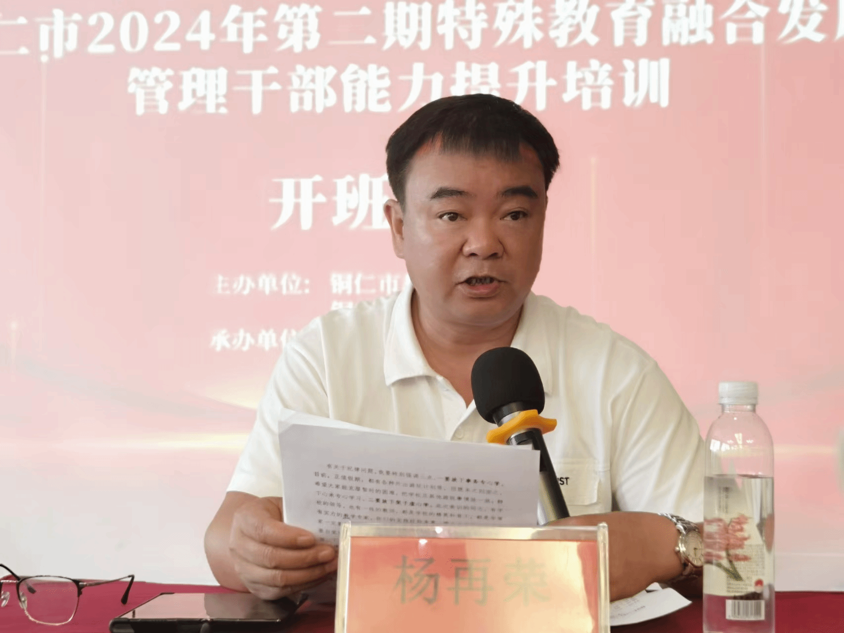 铜仁市特殊教育资源中心副主任杨再作开班致辞