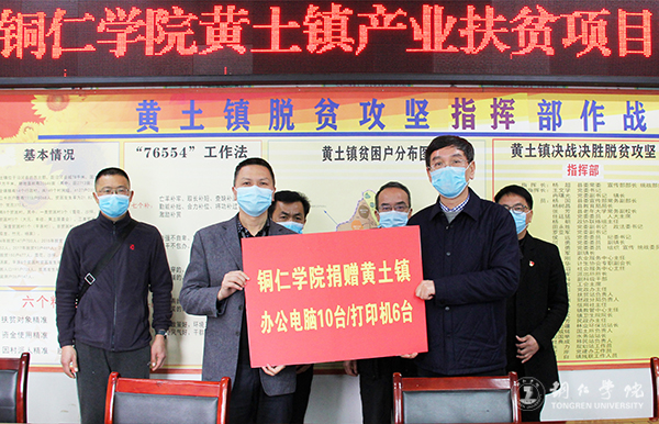 3月16日,beat365官网党委书记李树新、党委副书记代亮、资助中心副主任刘朝军、科研处副处长鲁道旺一行来到沿河县黄土镇,与黄土镇签订了生态鸡养殖、食用菌栽培产业扶贫项目协议,向黄土镇捐赠了50万元产业扶贫资金、10台办公电脑、6台打印机,为助力黄土镇脱贫提供支持和帮助。