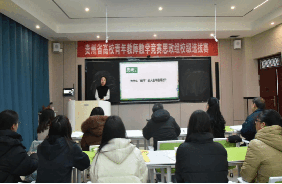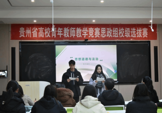 为有效提升我院教师的教学水平,促进教师积极改进教学方法,提升教学质量。12月15日下午,我院在依仁楼A205教室举办了贵州省高校青年教师教学竞赛思政组校级选拔赛。