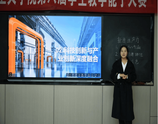 经班级初选,12名选手晋级决赛。决赛现场,选手们结合案例解读、情境模拟等方式,将理论知识与现实热点结合,既展现了思政学科的思想深度,又通过互动设计让课堂生动鲜活;部分选手还融入“大思政课”理念,将红色资源、社会实例融入教学,凸显了思政课的育人价值。