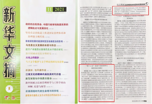 被《高等学校文科学术文摘》2021年第3期摘编(截图)
