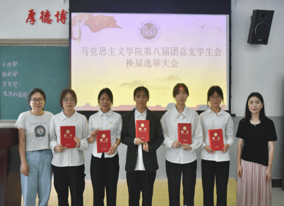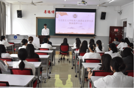 6月14日上午,我院在依仁楼A204教室召开了团总支学生会第八届换届大会。本次换届大会由团总支副书记韩杭主持,出席本次大会的有学院团总支书记迟婕老师、思政部负责人王晨老师、刘克彬老师、团总支学生会全体成员以及2022级、2023级思想政治教育班部分学生代表。