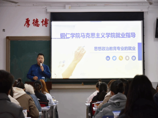 为促进我院2024届毕业生高质量就业,引导学生树立正确的就业观、择业观、提前做好就业的准备12月11日下午,我院在依仁楼A204教室开展了就业指导专题讲座。邀请了铜仁题名教育的专职就业规划师佟建强老师主讲。