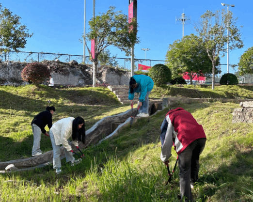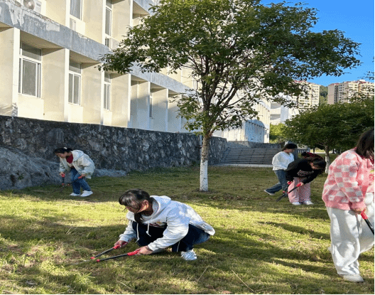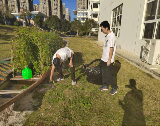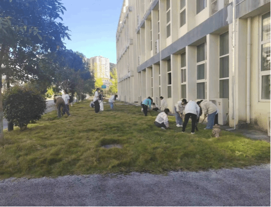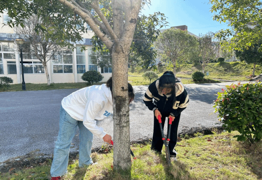 实践课开始前,2022级劳动委员杨伟荣根据劳动区域布置分组任务,强调开展实践课时的相关安全注意事项。随后,同学们拿好工具,到我院规定绿化区域进行劳动实践。在劳动过程中,同学们以积极的态度、饱满的热情投身劳动,认真清扫劳动区域的每个角落,他们分工明确、各司其职,有人除杂草,有人剪枯树枝,有人修整草皮,有人清理垃圾并按要求对垃圾进行分类处理。在大家的共同努力下,同学们将学院绿化区域整理得无限美丽,一片片整洁的绿地展现在大家的眼前。