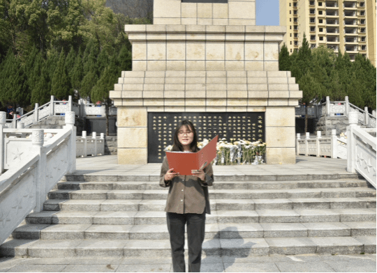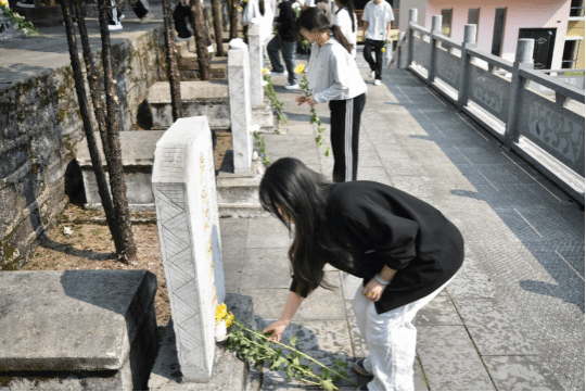 上午9点,参与此次活动的全体师生在学院门口集中统一前往铜仁市文笔峰烈士陵园。到达陵园后,在我院团总支学生会组织部成员夏金凤的主持下,师生们向革命烈士敬献花篮、整理缎带、静立默哀三分钟,深切怀念为民族独立和人民解放事业献出生命的英烈。然后,由党员代表吴光胜介绍文笔峰烈士陵园,让同学们更加深入了解了革命烈士的丰功伟绩。紧接着,党员代表翟丽林带领党员重温了入党誓词,党员同志们紧握右拳,面向党旗,庄严宣誓,表达了对党的忠诚和对革命事业的坚定信念。随后,党委副书记李兢作了讲话,她强调,我们应当怀揣着感恩之心,铭记历史,珍惜当下,继续传承革命烈士对党忠诚、信念坚定、敢于担当、不怕牺牲的精神,不断提升自我,努力成长为新时代的好青年。最后,大家有序地向革命烈士纪念碑敬献白花,祭扫烈士陵墓。