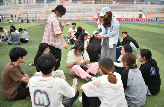 活动现场气氛热烈,三个游戏依次有序开展。在“经典著作金句盲盒”游戏中,同学们随机抽取盲盒中的经典金句卡片并分享感悟,于字里行间感受知识的魅力;“党史大事件接龙”环节,大家全神贯注、积极思考、踊跃发言,以接龙的方式重温党史,激发了对党史知识的学习热情;“运动场知识寻宝”更是将知识问答与寻宝巧妙结合,同学们活力满满在运动场上穿梭奔走,凭借智慧寻找宝藏点,在欢乐中提升了对理论知识的兴趣和解决问题的能力。活动在一片欢声笑语中结束,同学们纷纷表示,此次活动形式新颖有趣,不仅帮助自己放松身心、缓解压力,还在团队合作中提升了沟通协作能力以及学习到了更多知识。