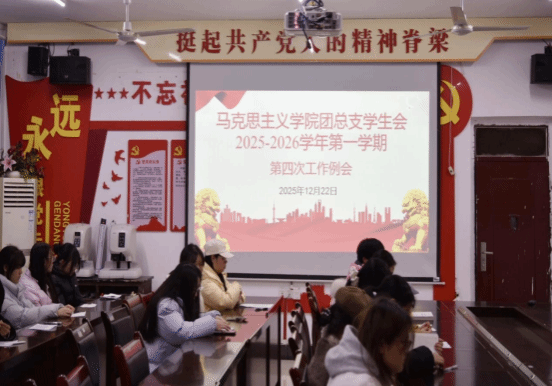 为深化组织建设、梳理学期工作得失,进一步提升学生组织服务效能,院团总支学生会12月22晚上在依仁楼A马院会议室召开2025-2026学年第一学期工作总结大会。本次会议由学生会执行主席陈洪主持,主席团成员、各部门负责人及全体干事参与