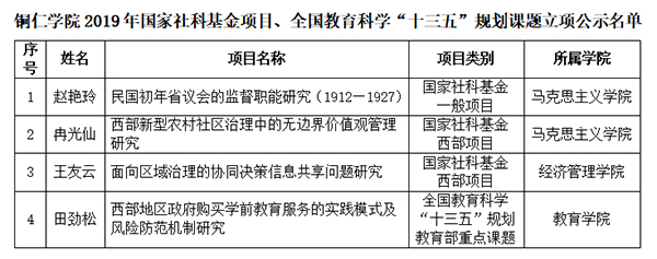 据悉,获立项的国家社会科学基金年度项目有我院教授冉光仙老师的西部项目《西部新型农村社区治理中的无边界价值观管理研究》,博士赵艳玲老师的一般项目《民国初年省议会的监督职能研究(1912—1927)》