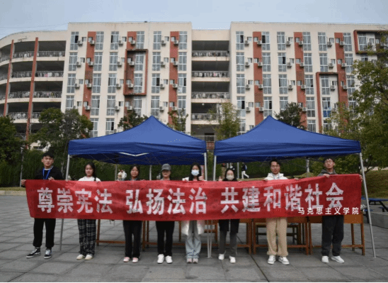 在第十个国家宪法日到来之际,为进一步增强同学们的法治意识、强化法治宣传教育,推进校园法治建设。12月8日中午,我院在丹桂餐厅广场上组织开展了“尊崇宪法 弘扬法治 共建和谐社会”宣传签名活动。