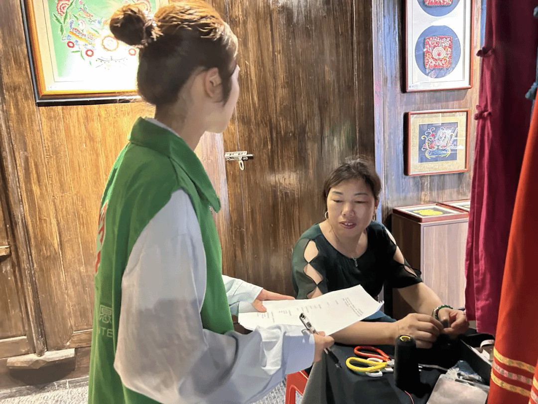 紧接着,宣讲团深入当地住户、商户进行走访调查和宣传。通过与旅拍店老板的交谈得知,她想将民族服饰穿在每一位游客身上,让游客切实感受到民族文化,从而加强对民族文化的认同感,促进中华民族一家亲。通过对当地居民的走访发现,在这片红色文化厚土上,每个人心中都有属于自己的红色之光。当地一位住户认真给宣讲团讲述了周逸群烈士的革命故事、英勇事迹。说到革命精神,他直感慨:“社会主义好,中国共产党领导得好!”