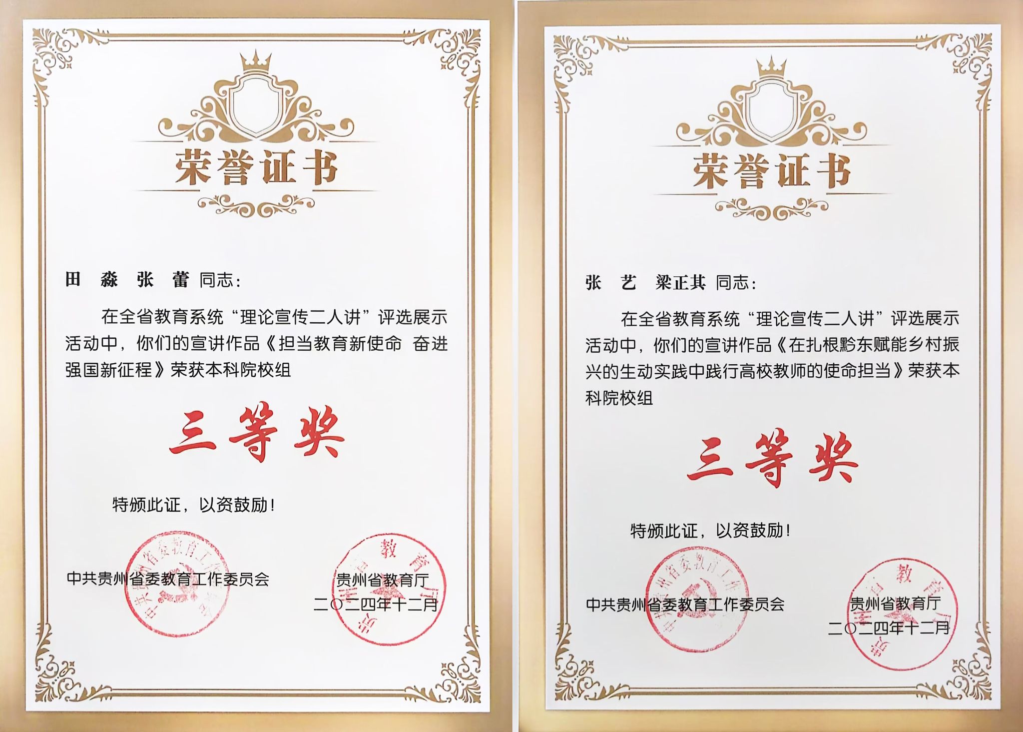 全省教育系统“理论宣传二人讲”评选展示活动获奖证书