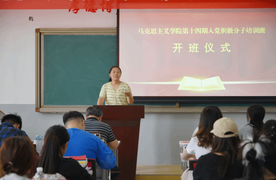 3月27日中午,我院第十四期入党积极分子培训班在依仁楼A204教室举行开班仪式。党委书记张江林出席并作动员讲话,党委副书记李兢作学习纪律要求,学生党支部书记杨学礼主持开班仪式。