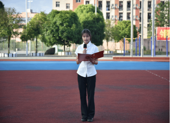 随着清晨的第一缕阳光洒在操场上,师生们整齐列队,静候升旗仪式的开始。升旗仪式正式开始时,由学生组成的仪仗队迈着整齐划一的步伐,护送国旗走向升旗台。在雄壮的国歌声中,鲜艳的五星红旗冉冉升起,全体师生肃立,行注目礼,表达对祖国无限的热爱和崇高的敬意。升旗仪式后,我院2024级思想政治教育班夏金凤同学,以“千年龙舟竞渡,今朝青年启航:端午精神的当代回响”为主题进行讲话。她回顾了端午节的历史渊源和文化意义,强调了屈原的爱国精神和端午习俗中的团结、奋斗和文化自信等价值观念。她呼吁同学们将这种价值观念融入日常学习和生活中,以实际行动传承和发扬这一宝贵的文化遗产,以更加饱满的热情投入到学习和工作中,为实现中华民族伟大复兴的中国梦贡献青春力量。