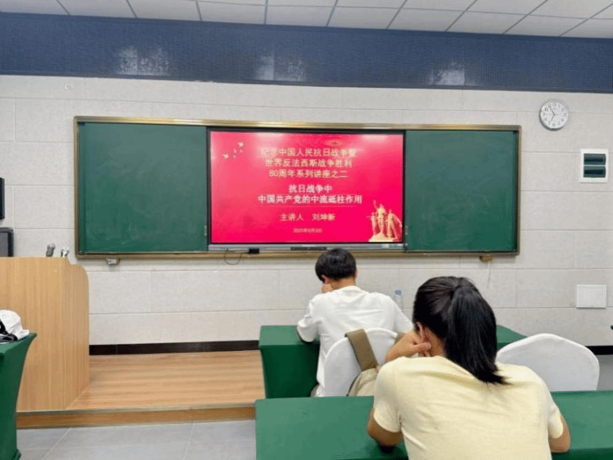 为深切缅怀革命先烈、弘扬伟大抗战精神,在9月3日这个纪念中国人民抗日战争暨世界反法西斯战争胜利80周年的重要历史时刻,beat365中国唯一官网马克思主义学院于学科楼604教室成功开展了新学期硕士生思想政治教育课暨“纪念抗日战争胜利系列讲座”第二讲。本次讲座特邀刘坤新老师担任主讲,围绕“抗日战争中国共产党的中流砥柱作用”开展党史学习教育,马克思主义学院全体硕士研究生参加。