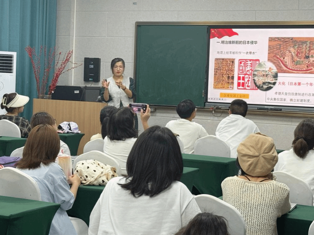 刘坤新老师围绕“为什么日本侵华战争是蓄谋已久?”“中国共产党为什么能促成抗日民族统一战线?”两个问题,系统阐述了中国共产党人在民族危亡关头如何以坚定的理想信念、强烈的爱国情怀成为全民族团结抗战的核心力量。