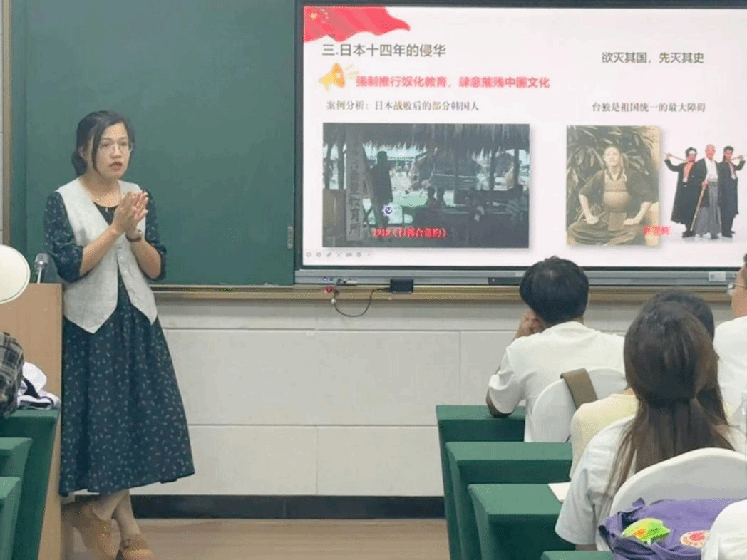 刘坤新老师结合阅兵仪式,阐述了“9·3”这一日子的重大历史意义和现实纪念价值,指出阅兵仪式不只是国家形象的展示,更是民族情感的集体表达;不仅彰显了国威军威,展现了国家捍卫和平的坚定决心,更是对历史的致敬、对精神的传承。