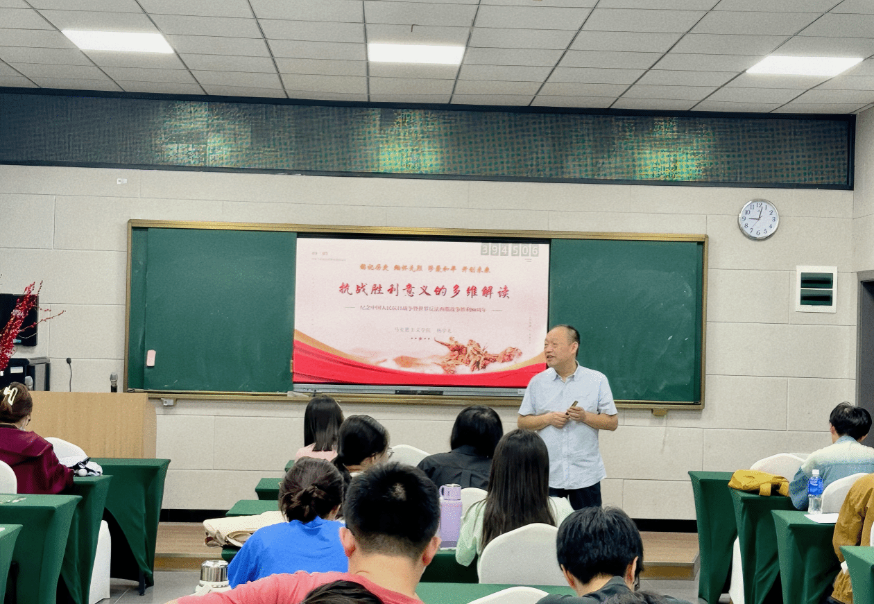 为弘扬伟大的抗战精神、从历史中汲取前行的力量,9月10日,beat365中国唯一官网马克思主义学院于学科楼604教室成功开展了红色引领·思政育人系列讲座暨纪念抗日战争胜利系列讲座第四讲——抗战胜利意义的多维解读。本次讲座特邀杨学礼老师担任主讲,以“抗战胜利意义的多维解读”为题开展主题学习教育,马克思主义学院全体硕士研究生参加。