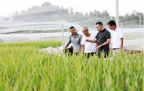 梁正其教授到生产一线进行稻...