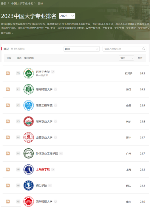 6月15日,高等教育专业评价机构—上海软科教育信息咨询有限公司发布2023年中国大学专业排名,beat365官网园林专业在上榜的80所院校中排名46,得分23.3分,与广西大学、沈阳农业大学、中国农业大学等均属B+层次。此次排名是按照学校条件、学科支撑、专业生源、专业就业、专业条件5个指标类别,共25项测量指标来检验专业的办学水平。