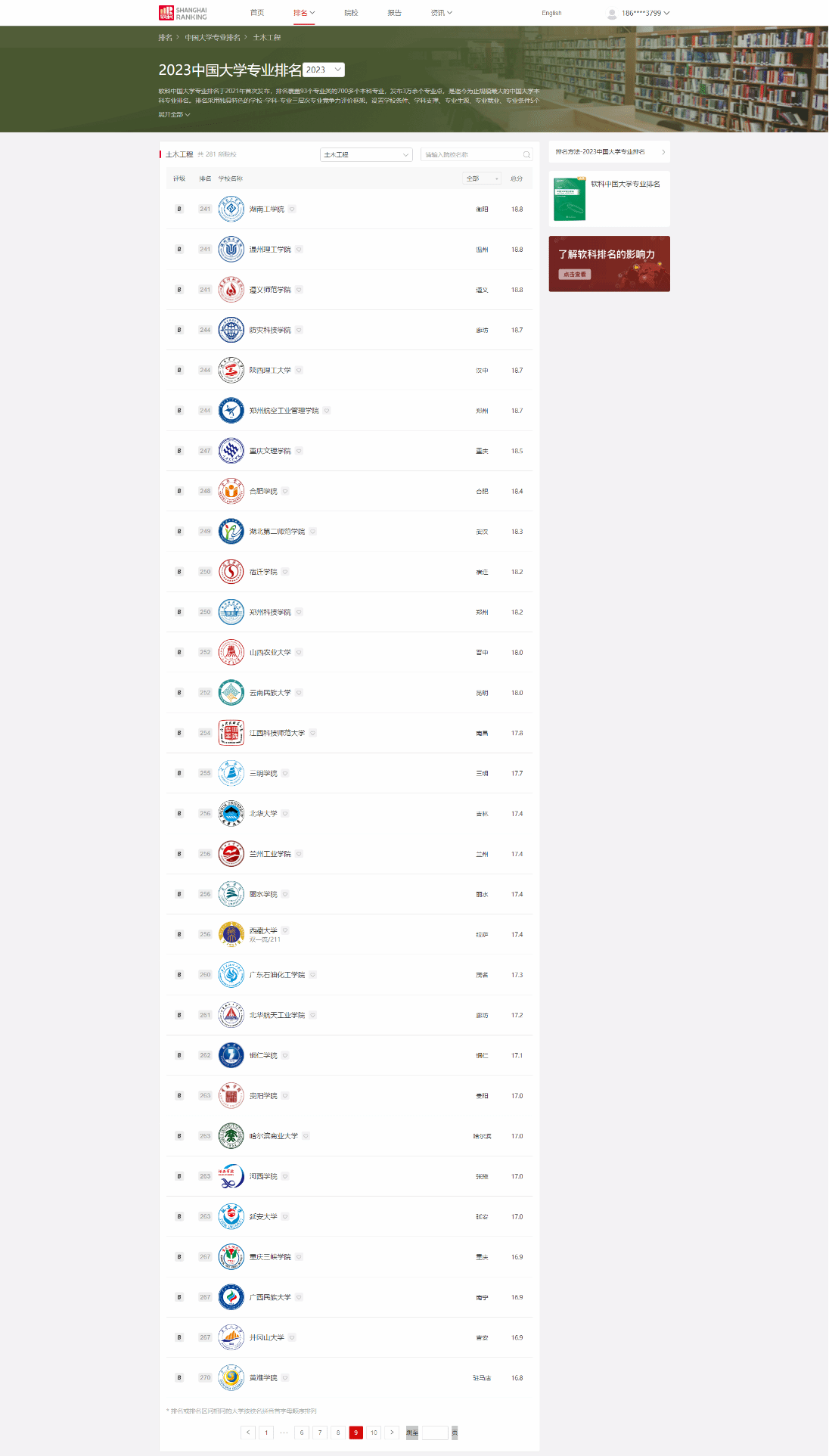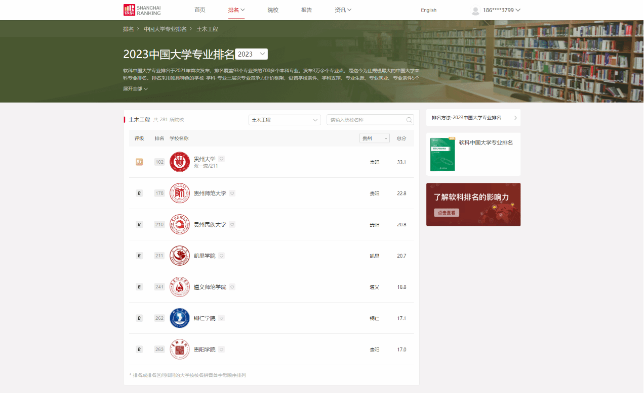 6月15日,高等教育专业评价机构—上海软科教育信息咨询有限公司发布2023年中国大学专业排名,beat365官网土木工程专业在上榜的281所院校中排名262,得分17.1分,贵州省内第6,属B等层次,全国共有572所院校开设土木工程专业。