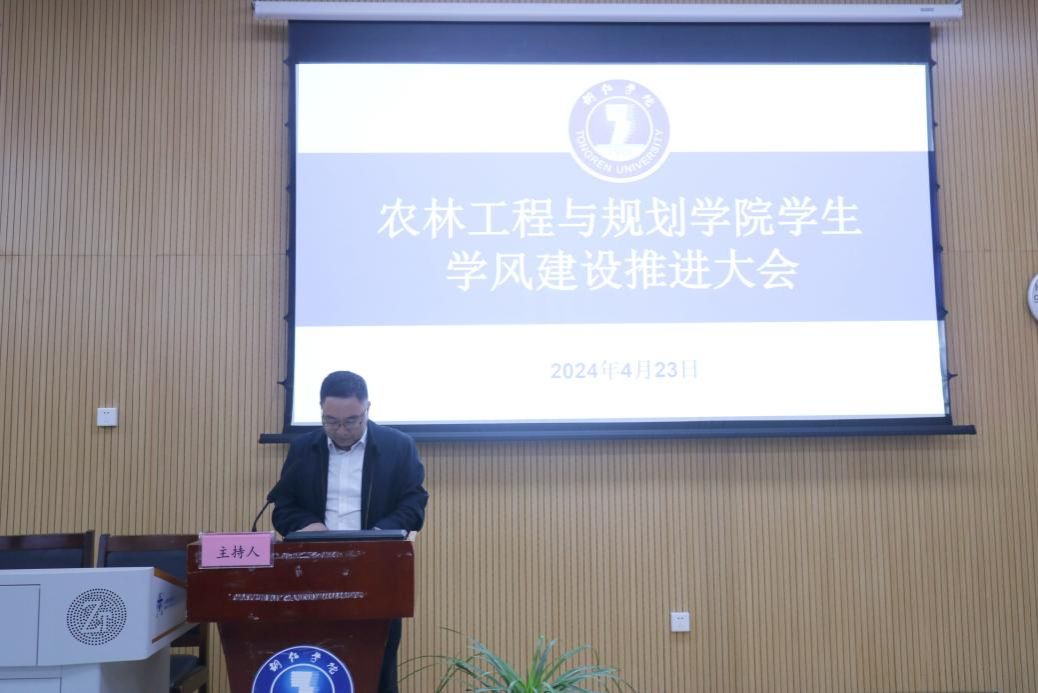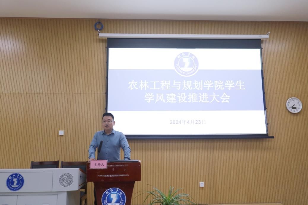 为深入学习领会党的二十大精神,认真贯彻落实习近平总书记关于建设教育强国重要论述,深入推进“三全育人”,切实加强学生学风建设,提升人才培养质量,推进养成教育,打造风清气正、学风优良的育人环境,促进学生德智体美劳全面发展。4 月23日,我院在博思楼206开展2024年学生学风建设推进大会。院党委书记李建新、院长米小其、副院长张俊波,院副科级以上干部、教研室主任(专业负责人)、全体辅导员(班主任)、学生党员、学生会干部、各班级学生代表参加此次大会。大会由院党委副书记蒋旭军主持。