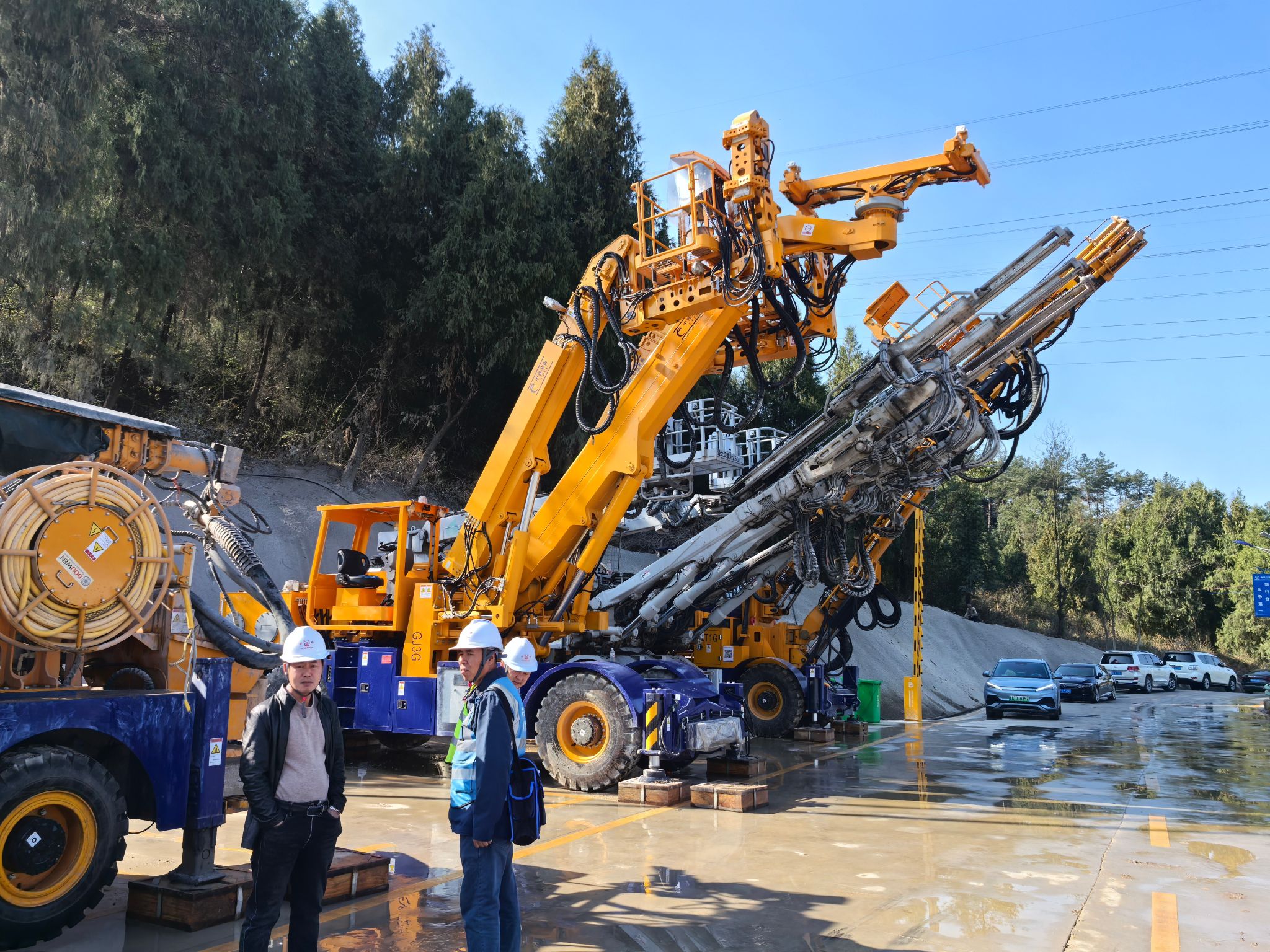 调研组实地考察了铜岩隧道斜井施工现场,重点观摩了隧道台车和锚封一体工程机械的展示。米小其指出:"这次交流为学院专业建设提供了鲜活的实践样本,我们将把高铁建设中的智能建造、生态修复等案例融入课堂教学,培养更多适应新时代基建需求的应用型人才。