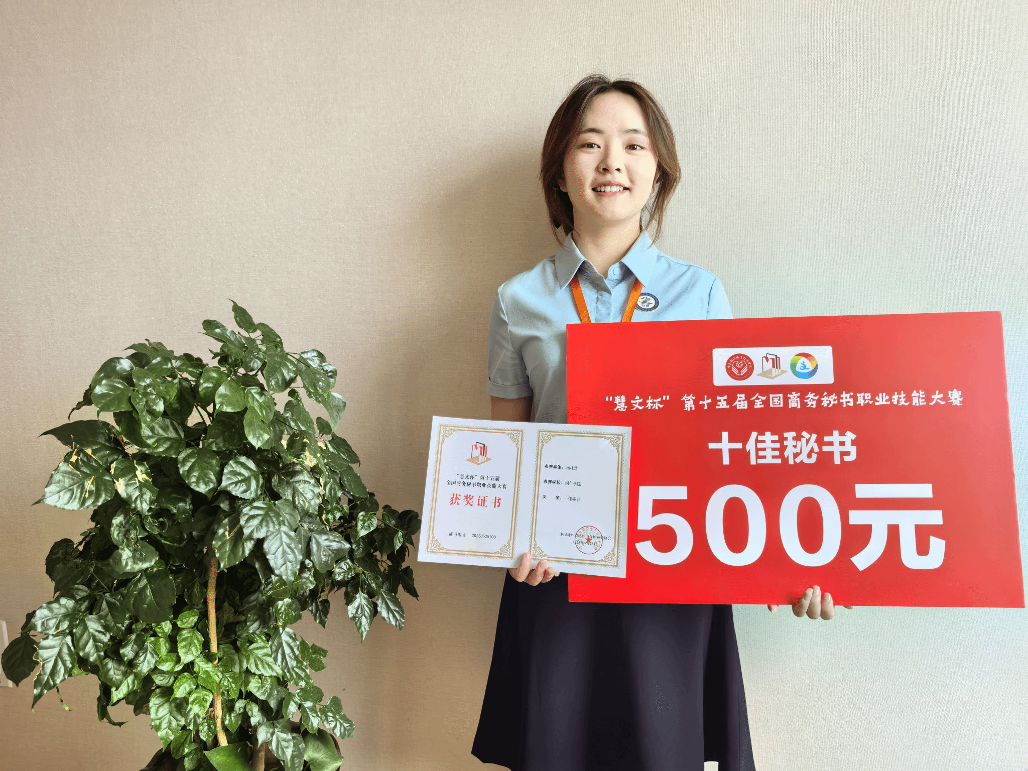 荣获“十佳秘书”称号的杨林慧同学