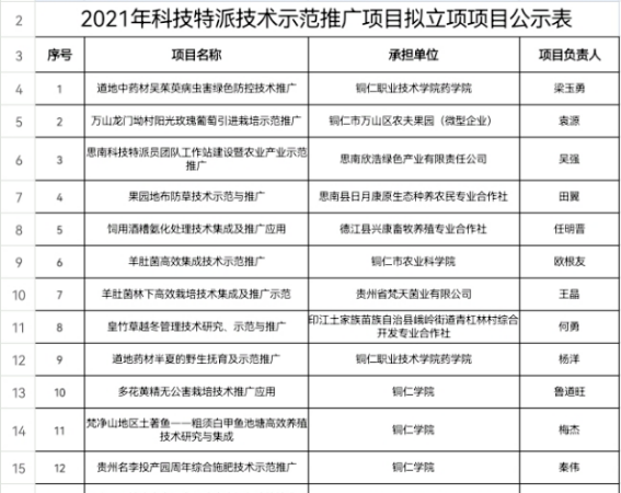 11月10日,铜仁市科技局公示了2021年科技特派员技术示范推广拟立项项目,我院秦伟副教授主持申报的《贵州名李投产园周年综合施肥技术示范推广》名列其中。