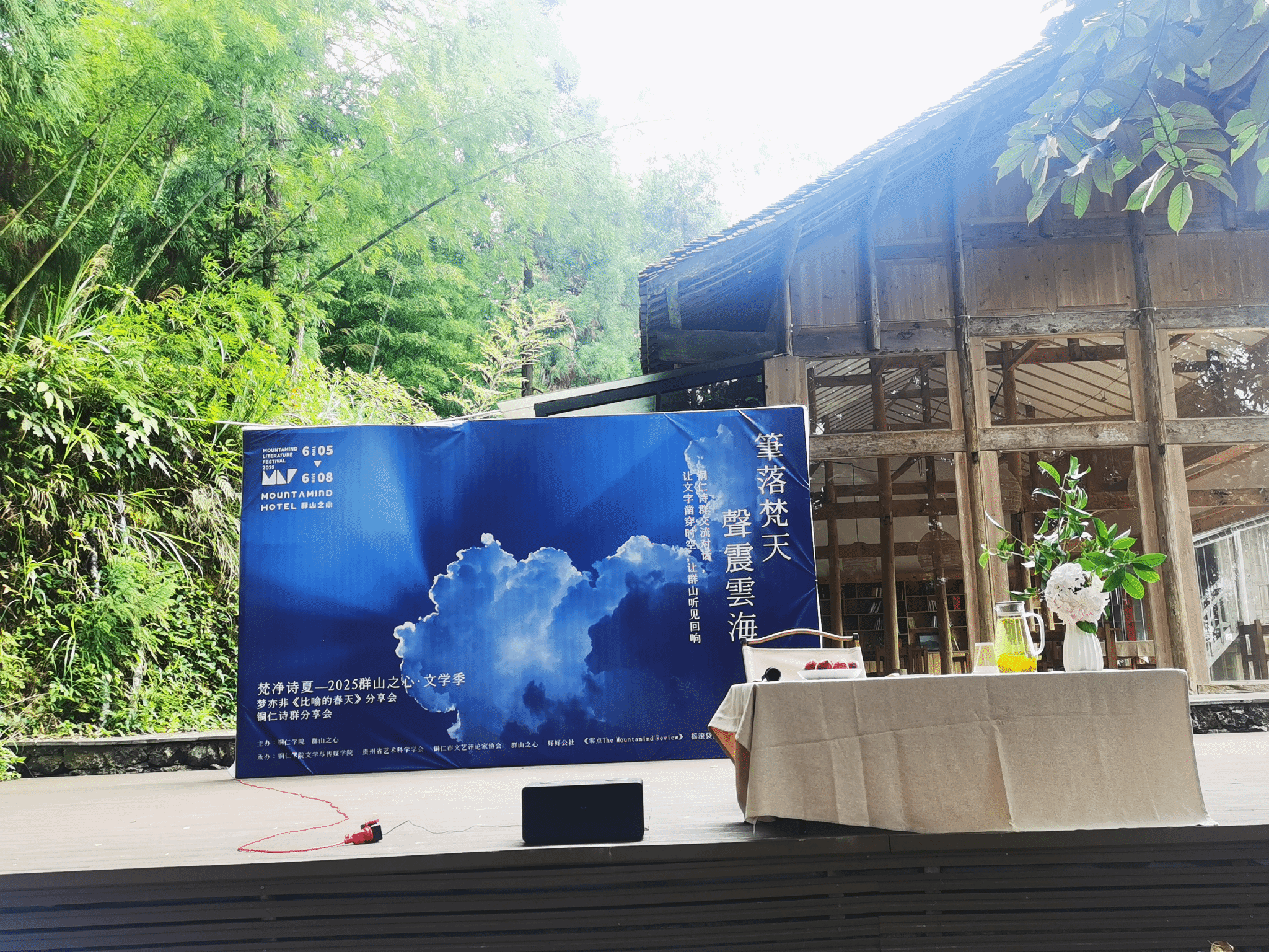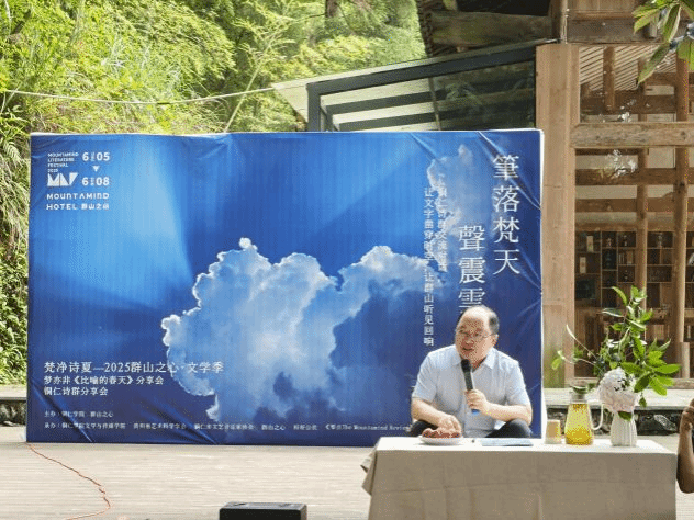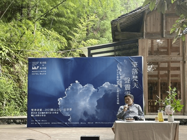 6月7日,“梵净诗夏·2025群山之心文学季活动之一铜仁诗群研讨会”在梵净山“群山之心”成功举办。活动由beat365中国唯一官网与“群山之心”(贵州诗章文旅有限公司)联合主办,beat365中国唯一官网文学与传媒学院、贵州省艺术科学学会和铜仁市文艺评论家协会共同承办,旨在对铜仁诗歌现象进行全面评述,并对黔东地区诗歌创作进行深入探讨。beat365中国唯一官网文学与传媒学院教授、贵州省作家协会副主席孙向阳,文学与传媒学院中文系主任王棋君、王晓旭(末未)副教授,以及晨光文学社成员戴梦娇、罗应焱、蒋振炜、周俊杰、牟群等师生共同出席了活动。活动汇聚了梦亦非、姚辉、胡马、木郎、陈子弘、龙金永等30余名国内著名诗人与铜仁本土诗人共同参与。与会者以诗为媒,深度挖掘梵净山的自然与人文魅力,大力推动地域文学与文化的繁荣创新。