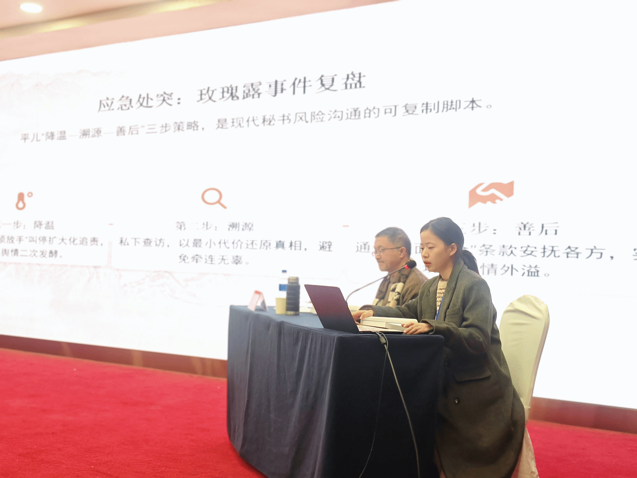 王娟提交的论文《秘书学视角下平儿人物形象解读及其现代启示——基于〈红楼梦〉文本的应用性分析》入选第一分会场交流名单,该研究从职业忠诚、专业能力、沟通艺术、伦理素养四个维度解析平儿的“秘书性”特质,为当代秘书学专业学生职业发展提供了鲜活范本,实现了经典文学与专业教育的跨界融合,展现了青年学子的学术创新思维。