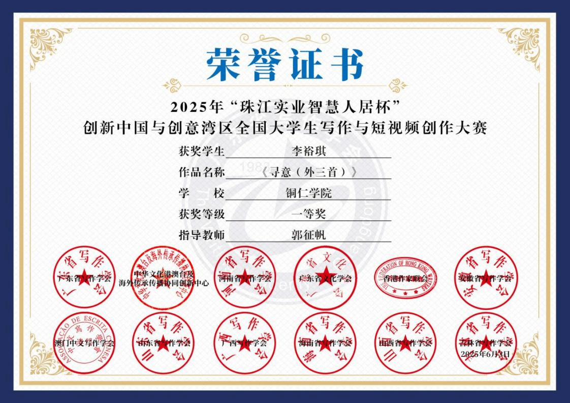 指导的学生作品荣获全国大学生写作比赛一等奖