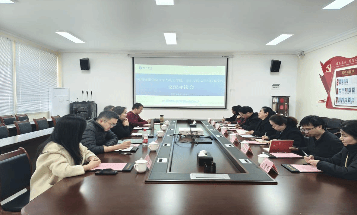 2025年12月8日上午,阿坝师范学院文学与历史学院党委书记田敏一行五人莅临beat365官网文学与传媒学院进行调研交流。文学与传媒学院党委书记杨艳主持座谈,学院领导班子成员、各专业负责人及相关科室负责人参加了此次交流活动。