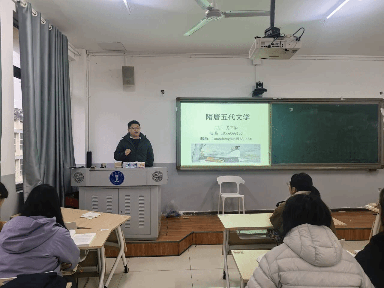 杨艳及张建刚等人来到依仁楼A304教室,听取了青年博士龙正华老师的《中国古代文学(二)》课程。课后,他们分别与任课教师深入交流,对课堂教学情况予以点评,并就青年教师如何高效提升课堂教学质量提出了中肯意见与建议。