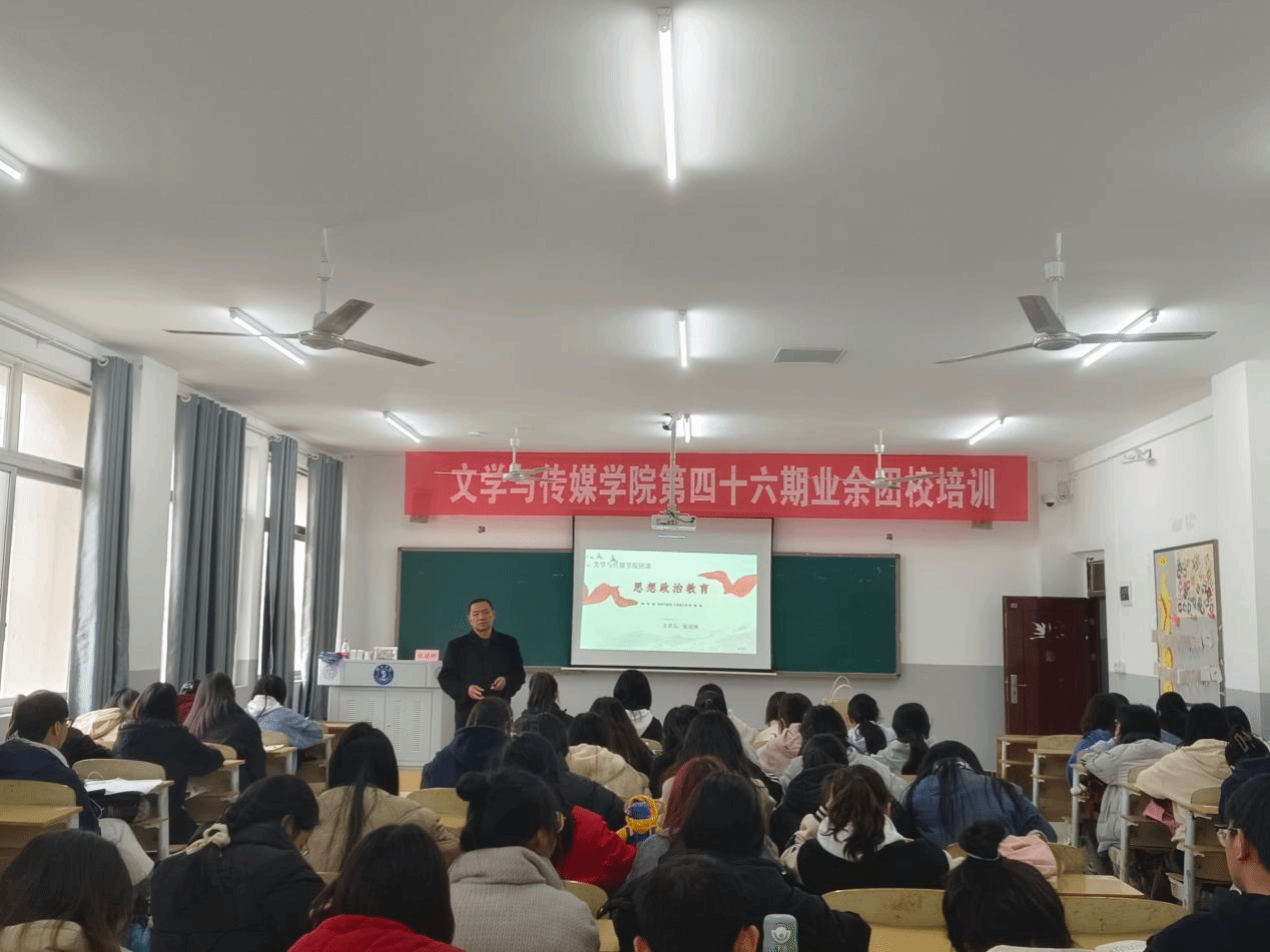 3月13日,文学与传媒学院副院长张建刚在依仁楼A402教室为参加第46期业余团校培训的学生带来了一场生动的思政课。此次课程旨在引导团员们树立正确的价值观,厚植爱国情怀,为未来的社会主义建设事业奠定坚实的基础。