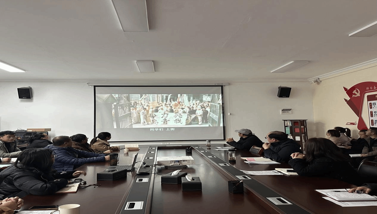 为深入学习贯彻党的二十届三中全会精神,推动党史学习教育常态化长效化,引导全体党员弘扬伟大建党精神,传承红色基因,赓续红色血脉。12月9日,我院教工第一党支部开展党史学习教育主题党日活动,组织全体教职工集中观看红色电影《建党伟业》。