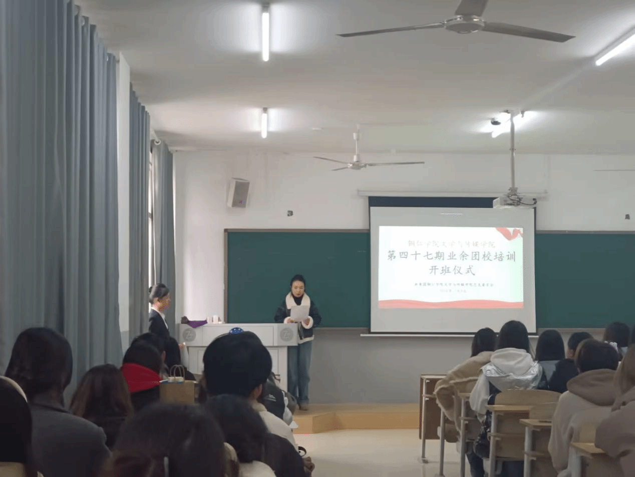 12月4日,我院于依仁楼A402教室开展第47期业余团校培训开班仪式。我院党委副书记杨雪、团总支负责人杨梦阳出席此次开班仪式。