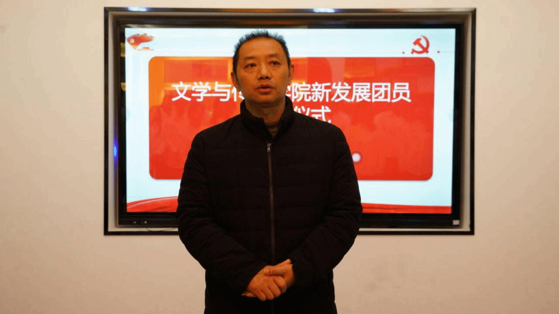 文学与传媒学院副院长张建刚、学生科负责人杨蓉、团总支负责人杨梦阳、学生党支部负责人杜晓霞以及27位新发展团员共同参与本次仪式。入团仪式上,四位老师为新发展团员佩戴团徽,组织部左泽宇同学带领全体新团员们庄严宣誓,23级网络与新媒体班龙纹超同学作为新团员代表发言。