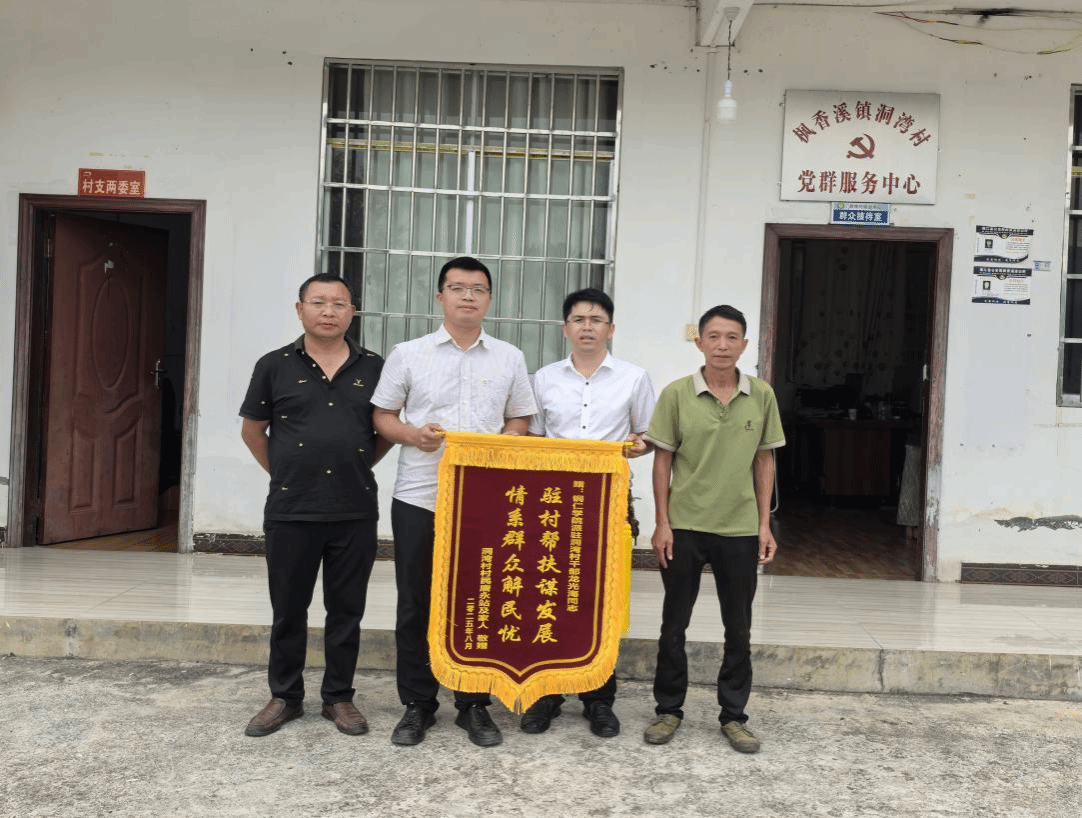 近日,我院派驻洞湾村干部龙光海收到了一份特殊的“礼物”—枫香溪镇洞湾村村民代表自发制作的锦旗。鲜红的锦旗上,“驻村帮扶谋发展,情系群众解民忧”14个金色大字格外醒目,不仅承载着村民对龙光海驻村工作的认可,更凝聚着干群之间的深厚情谊。