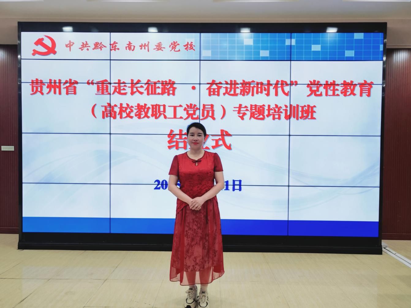 近日,全省“重走长征路·奋进新时代”党性教育专题培训班在黔东南州委党校举办,我院唐竹英同志受学校选派参训。本次培训为期6天(7月6日至12日),面向全省高校教职工党员共100人开展。