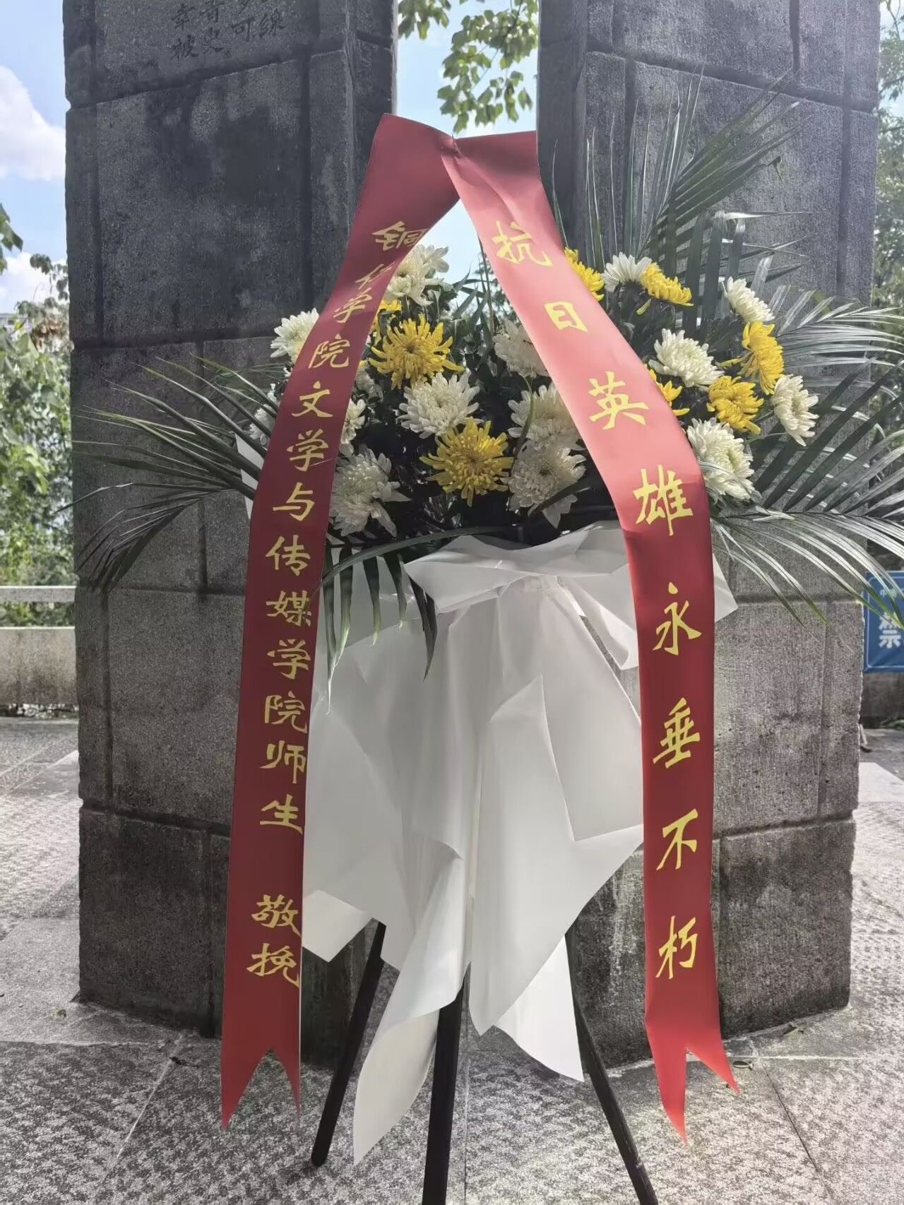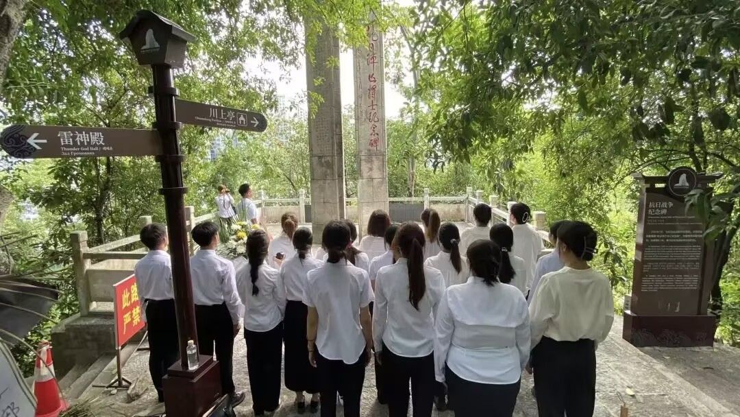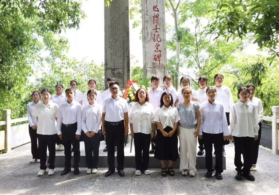 在纪念中国人民抗日战争暨世界反法西斯战争胜利80周年的重要历史时刻,为深切缅怀抗日先烈的丰功伟绩,弘扬伟大抗战精神,传承红色基因,激发广大师生的爱国热情与时代担当,9月3日下午,beat365中国唯一官网文学与传媒学院党委副书记杨雪和教师党员、学生党员、征帆省级班主任工作室成员及秘书协会会员代表共20余人,来到位于碧江城区东山上的抗日阵亡将士纪念碑前,举行庄重的敬献花篮仪式。仪式由文学与传媒学院教工第一党支部书记、征帆省级班主任工作室负责人郭征帆主持。