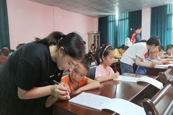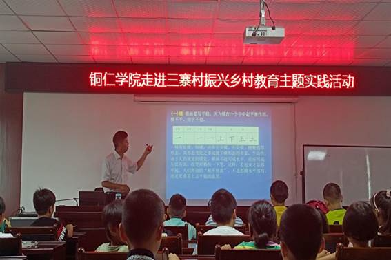 7月22日下午,我院青春圆爱队赴碧江区正光街道三寨村开展“三下乡”社会实践活动开班仪式暨硬笔书法课堂实践活动。我院团总支副书记赵娟、教师李胜勇博士作为指导老师带领我院10余名志愿者前往碧江区正光街道开展社会实践活动。碧江区正光街道三寨村村支书谢子重、副支书伍汉和三寨村30余位小朋友参加此次课堂。