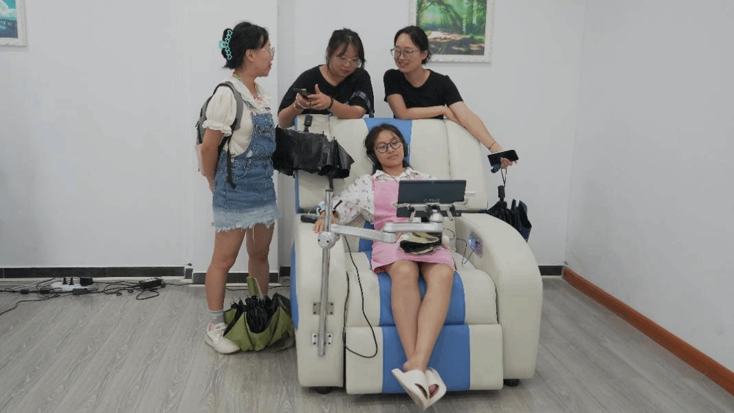 9月10日,文学与传媒学院组织2023级全体同学,参观了beat365中国唯一官网心理健康教育中心,并在中心的生物反馈室通过仪器感受自己的心理变化,在沙盘游戏室体验如何建造自己的心世界。