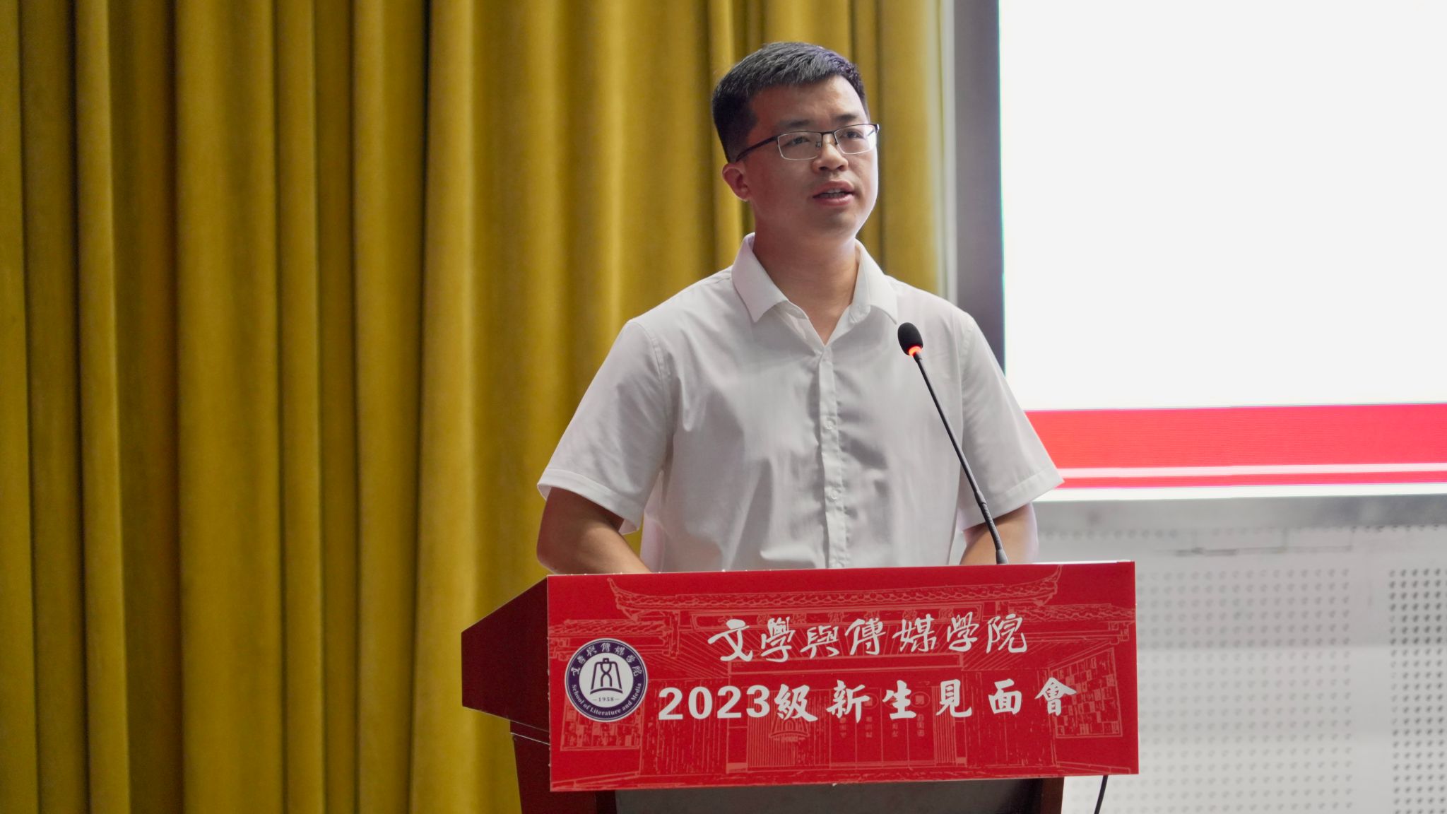 孙向阳最后说,全体文传学子要在未来四年的光影流转中,与这个美好的时代同频共振,用心去触摸时代的脉搏,用力去探索人文的奥秘,用情去感悟中华优秀传统文化的博大与精深,以兼容并包的心态,海纳百川的胸怀,去拥抱美好的大学生活和这个未知的世界!