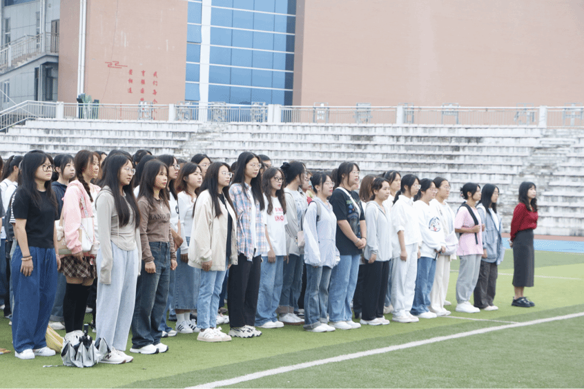 9月4日,文学与传媒学院在运动场举行了主题为“奋勇向前,书写无悔青春”的升国旗仪式。