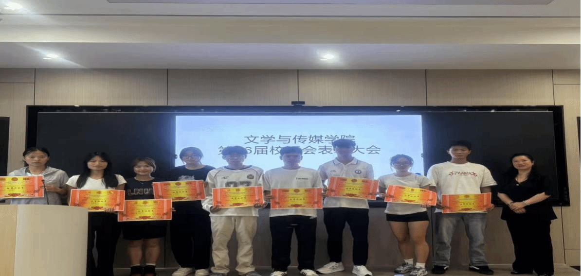会上张建刚副院长从竞技成绩、团队协作、精神风貌等方面回顾校运会赛事亮点,总结了我院在本次校运会中的成果,强调“以体育人、以文化人”育人理念的重要性。接着,他宣读了《文学与传媒学院关于表彰46届田径运动会优秀运动员与优秀工作人员的决定》,授予肖双双等9名同学“最佳运动员”称号林星等26名同学“优秀工作人员”称号。杨艳书记与张建刚副院长共同为获奖者颁发荣誉证书、奖品并合影留念。