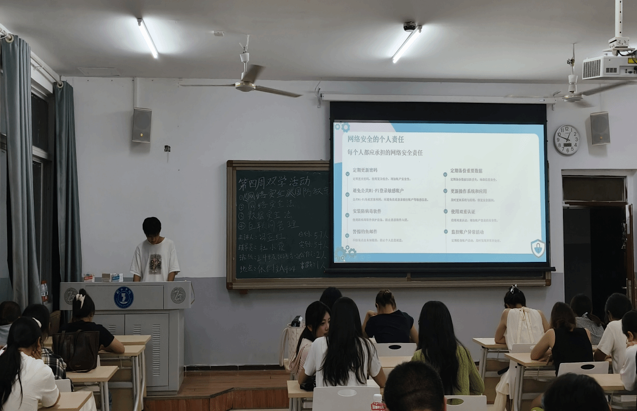 传授防护技能,提升应对能力。 针对如何防范网络风险,各班提供了实用的安全技能指导,包括如何设置复杂密码、识别钓鱼网站和诈骗信息、保护个人隐私数据、安全使用公共Wi-Fi、规范使用社交媒体等。部分班级还设置了互动问答和情景模拟环节,让同学们在实践中掌握应对网络诈骗和危机情况的处置方法。