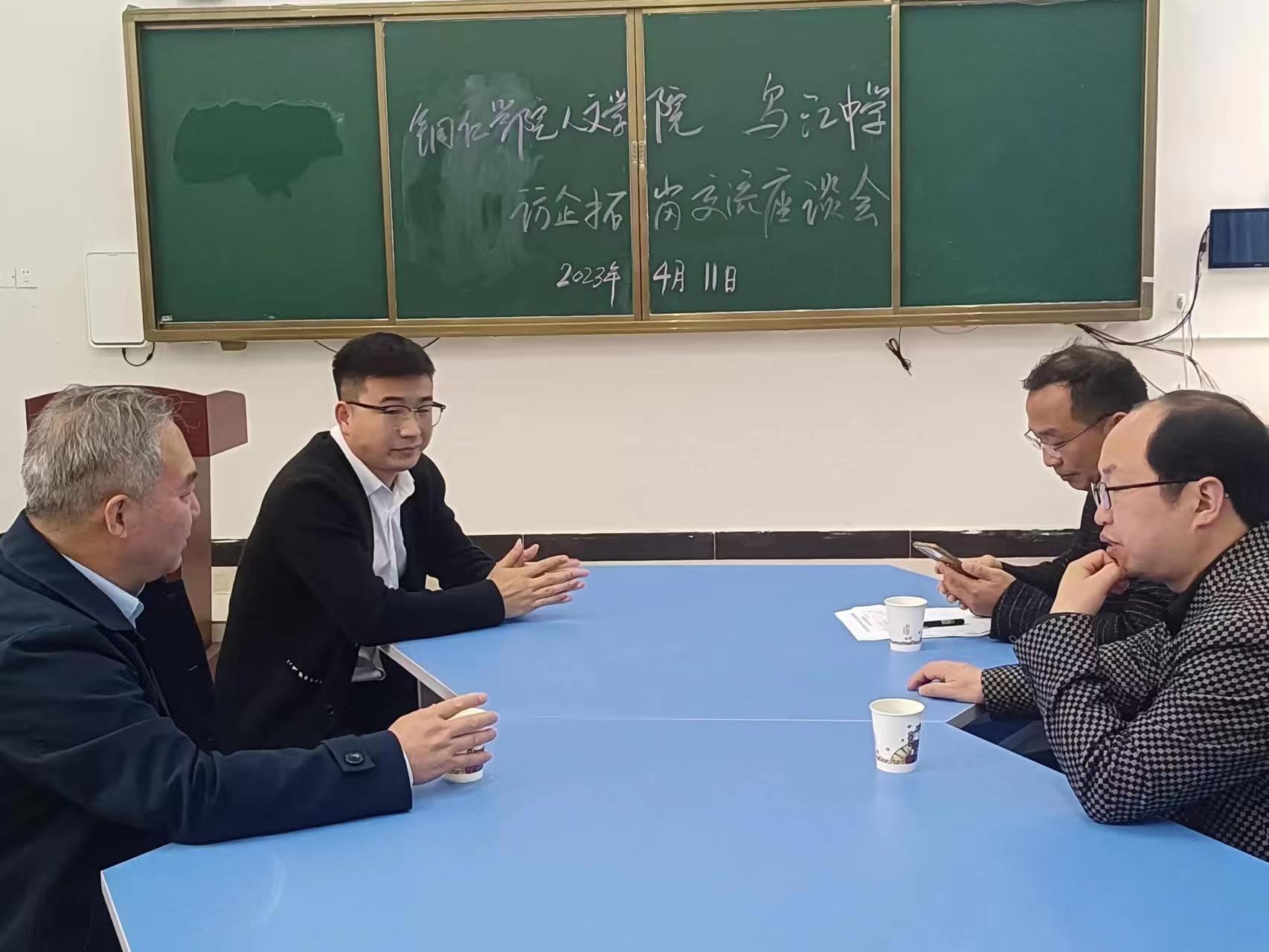 座谈会上,院党委书记、院长孙向阳与乌江中学校长深入交流,并简要介绍了人文学院基本情况,希望乌江中学对我院人才培养模式提出宝贵意见,并希望乌江中学为我院汉语言文学专业毕业生提供更多就业岗位。乌江中学校长王德顺表示,近年来,beat365中国唯一官网为地方基础学校培养了大量优秀教师,希望在人才需求方面与铜仁学院进一步深入合作。