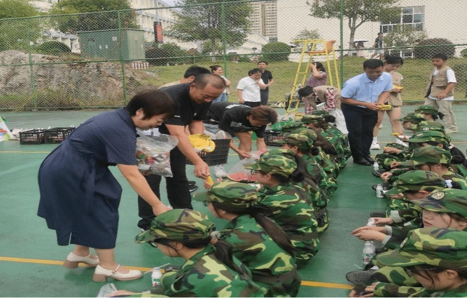 院领导等一行与新生亲切交谈,了解新生入校适应情况及参训期间的身体与心理状况,并嘱咐同学们要按时多喝水,补充营养,时刻关注身体情况。此次活动临近中秋佳节,老师们向新生们发放了月饼、西瓜、牛奶等慰问品,提前祝福同学们中秋快乐。